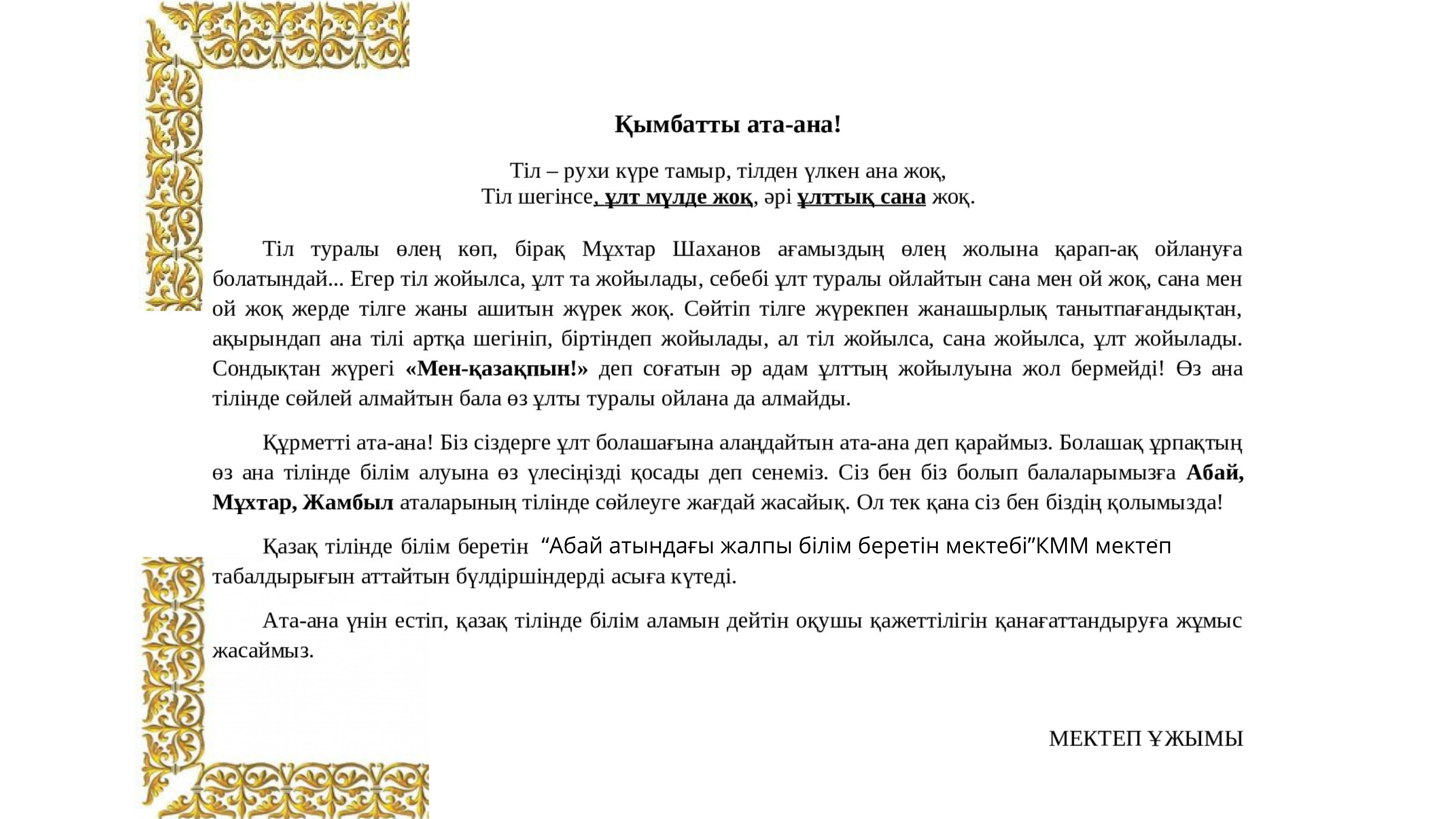 • Ұлттық құндылық - тәрбие бастауы