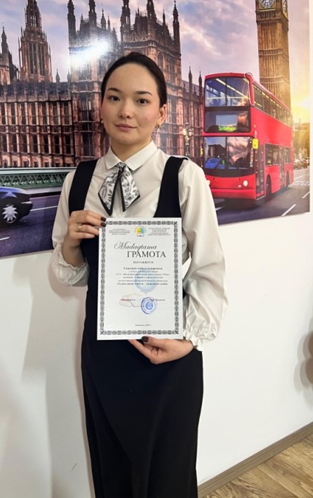 «Дарынды балаларға - талантты ұстаз» республикалық педагогикалық олимпиадасының 2025-2026 оқу жылындағы І аймақтық кезеңіне мектебімізден ағылшын тілі пәнінінің мұғалімі Галымова Ақбота Асқарқызы қатысып жүлделі І орын иемденді. -