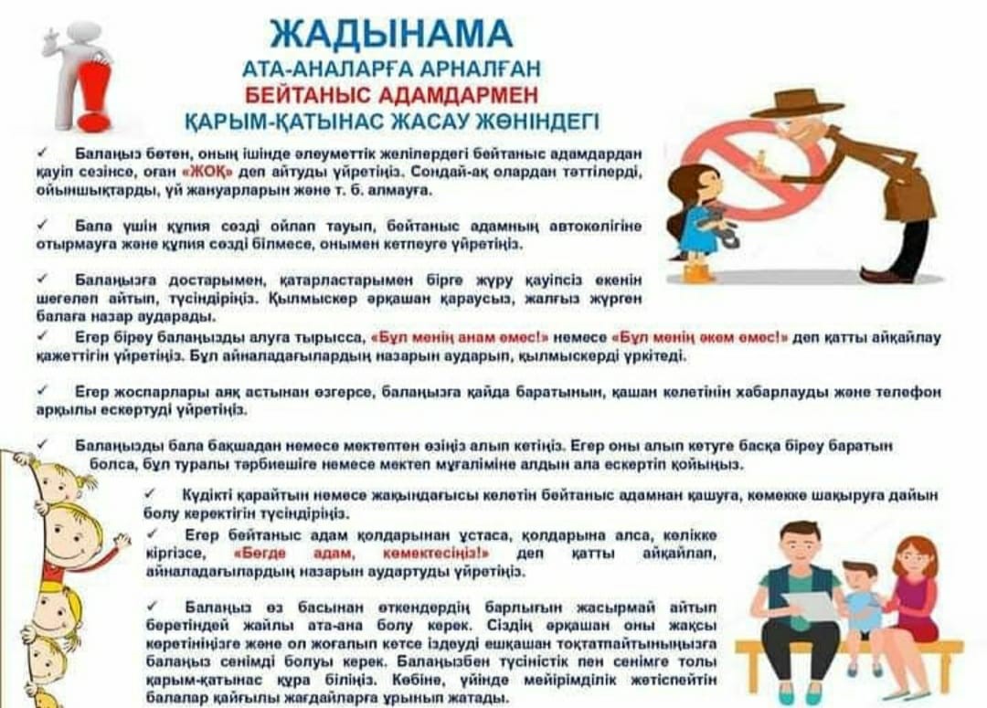Күзгі демалыс кезінде оқушының өмірі мен денсаулығына төнетін қауіп – қатердің алдын алу мақсатында оқушылар мен ата – аналардың төмендегі жайттарды ескергені жөн: