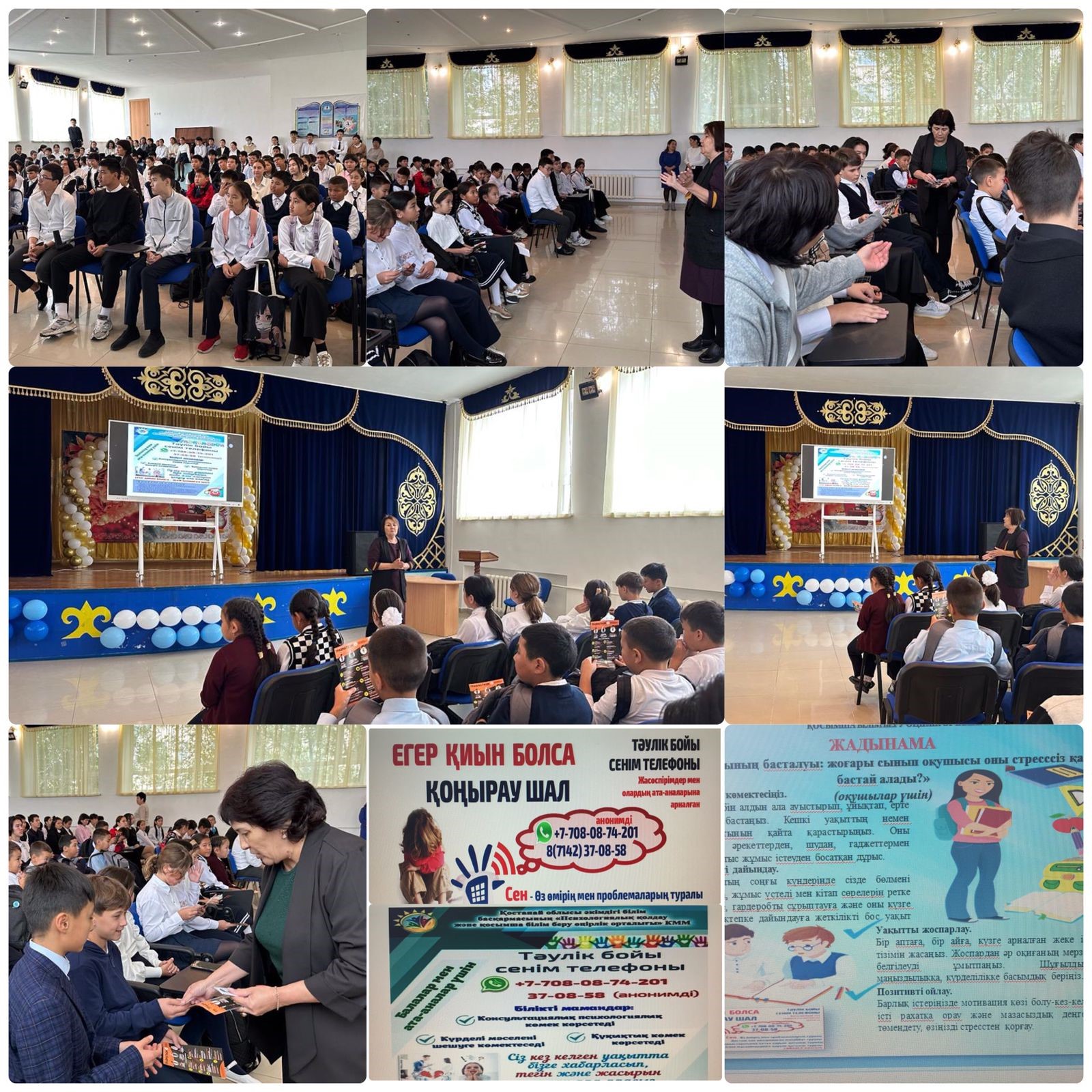 - «Оқушыларға әр күнге арналған ұсыныстар» атты тақырыптарда ақпараттық-түсіндірме жұмыстары жүргізіліп, буклеттер таратылды.