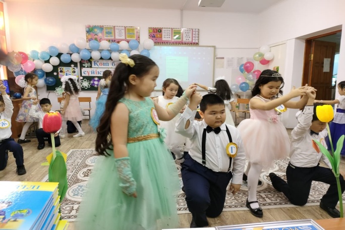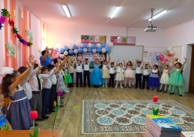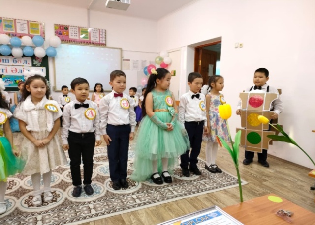 Барысы: Кешті әдемі ырғақ биімен бастады, «Қош бол, сүйікті Әліппем» атты әдеби – музыкалық монтаж арқылы , әр оқушы өзінің сүйікті Әліппесіне алғыстарын білдірді,алған білімдерін , оқып , жаза алатындықтарын көрсетті, сонымен қатар, « Әдептілік –әлемі» тақырыбында әдептілік ережелерімен бөлісті, «Ойнауға болмайды таспенен» тақырыбында көрініс көрсете отырып, оқушыларды жаман әдеттерден аулақ болуға шақырды, қыз балаларымыз «Қарлығаш» биін билеп, өнерлі екендерін байқатты, ұл балаларымыз «Ел қорғауға әзірміз» әнін саптық шеруін айтып, болашақта елін қорғауға әзір екендігін көрсетті, кеш соңында барлық оқушылар «Бала тілегі» әнін орындай отырып, бейбіт өмірді қалайтындықтарын, Отандарын шексіз сүйетіндіктерін, сонымен қатар, ұзтаздар мен ата-аналарына ризашылықтарын білдіре отырып, осы әдемі әнмен аяқтады.Мұғалім кеш соңында әр оқушыға жұлдызша үлестіре отырып, шәкірттерінің болашақта сабақты жақсы оқып, осы жұлдыздай жарқырап жануына, биіктерден көрінуіне тілек білдірді. Мектеп директоры Сатубалдина Ақбөпе Бекетқызы, әр оқушыға Әліппені жақсы аяқтағандарына алғыс айта отырып, әр оқушыға мақтау қағаздарын табыс етті.Ата-аналарда балаларының алған білімдеріне көздері жетіп, алғыстарын жеткізді.