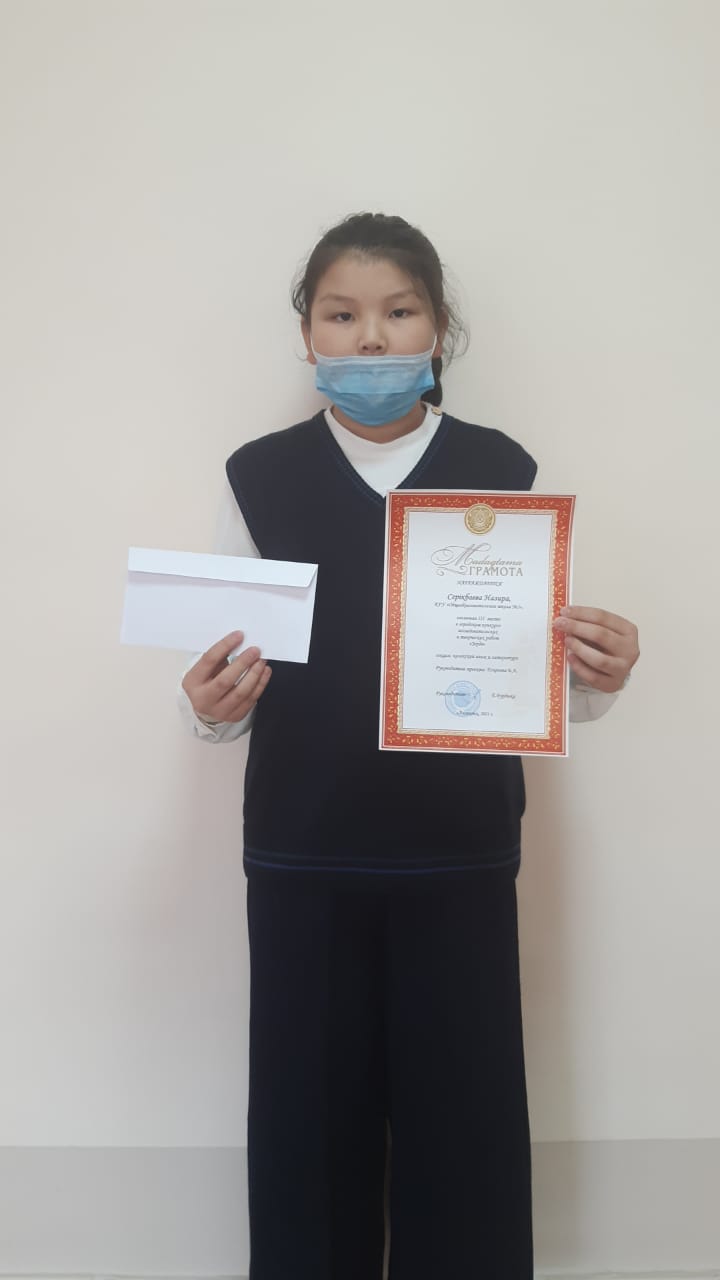 Мукумова Анара 7 А- сыныбы, Абишева Айсұлу 7 А сыныбы, Абишева Гүлім 3- сынып, Сагидаукас Аружан 3- сынып, Болатбек Балжан 2- сынып оқушысы.