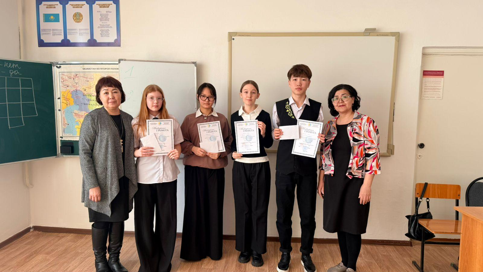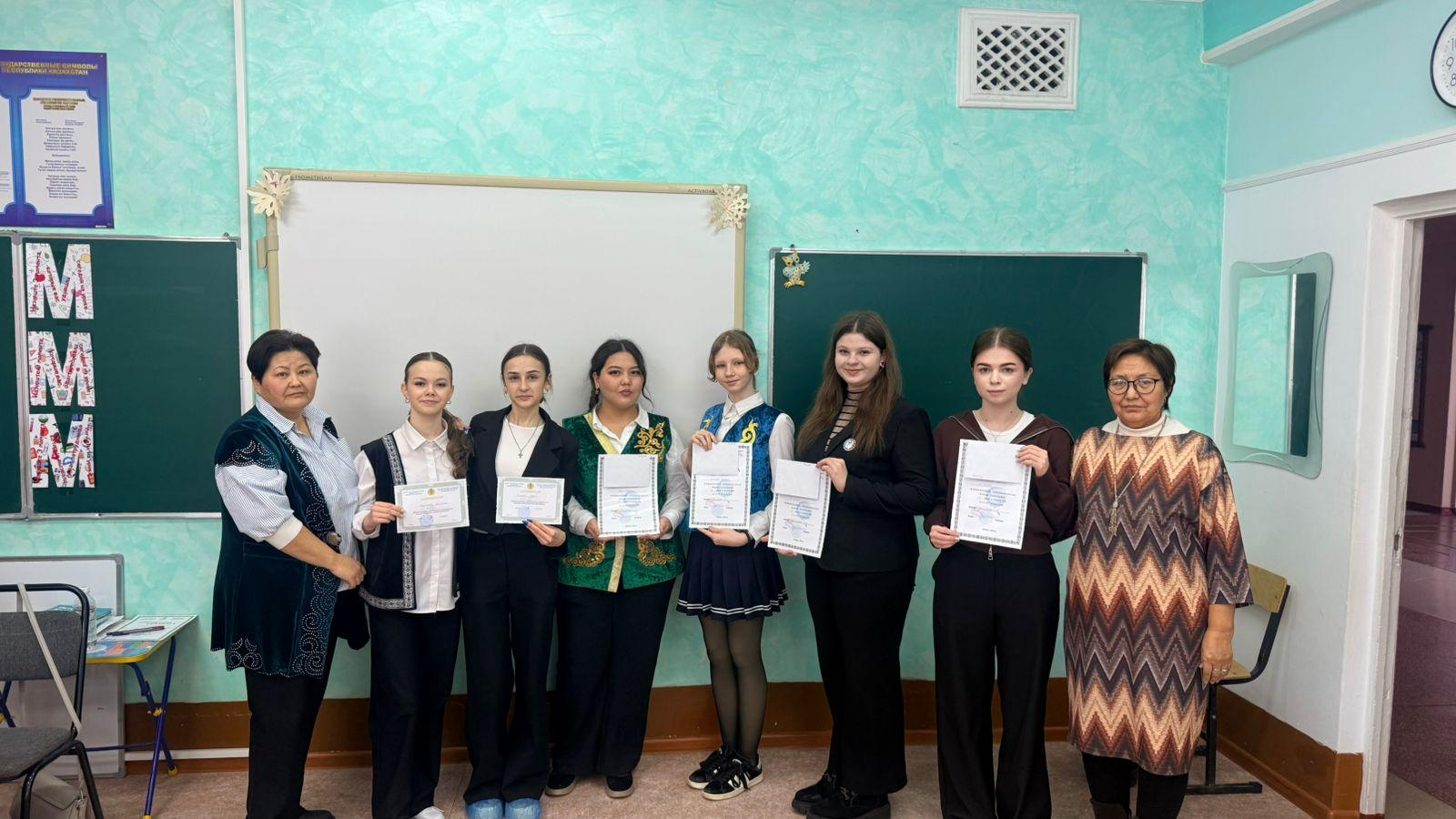 28.01 күні өткізілген "Жарқын болашақ" қазақ тілі олимпиадасынан Шалдыбаева Медина "Білгірлер" бағытынан 2 орын (Жетекшісі Тулебаева Д.Ж.), Манасов Саян "Сөз шеберлері" бағытынан 1 орын (Жетекшісі Тулебаева Д.Ж.), Иниятова Жанерке "Қаламгер" бағытынан 1 орын (Жетекшісі Тулебаева Д.Ж.) Саргалдаков Санжар "Әнші бұлбұлдар" 1 орын бағытынан (Жетекшісі Башеева А.А.) иеленді. 1 орын алған 3 оқушымыз облыстық кезеңге жолдама алды.